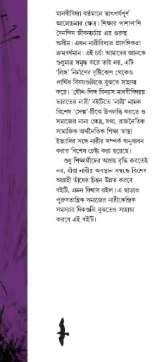 শুধু শিক্ষার্থীদের আগ্রহ বৃদ্ধি করতেই নয়, যাঁরা নারীর অবস্থান সম্বন্ধে বিশেষ আগ্রহী তাঁদের চিন্তন উন্নত করবে বইটি, এমন বিশ্বাস রইল। এ ছাড়াও পুরুষতান্ত্রিক সমাজের নারীকেন্দ্রিক সমস্যার দিকগুলি বুঝতেও সাহায্য করবে এই বইটি।